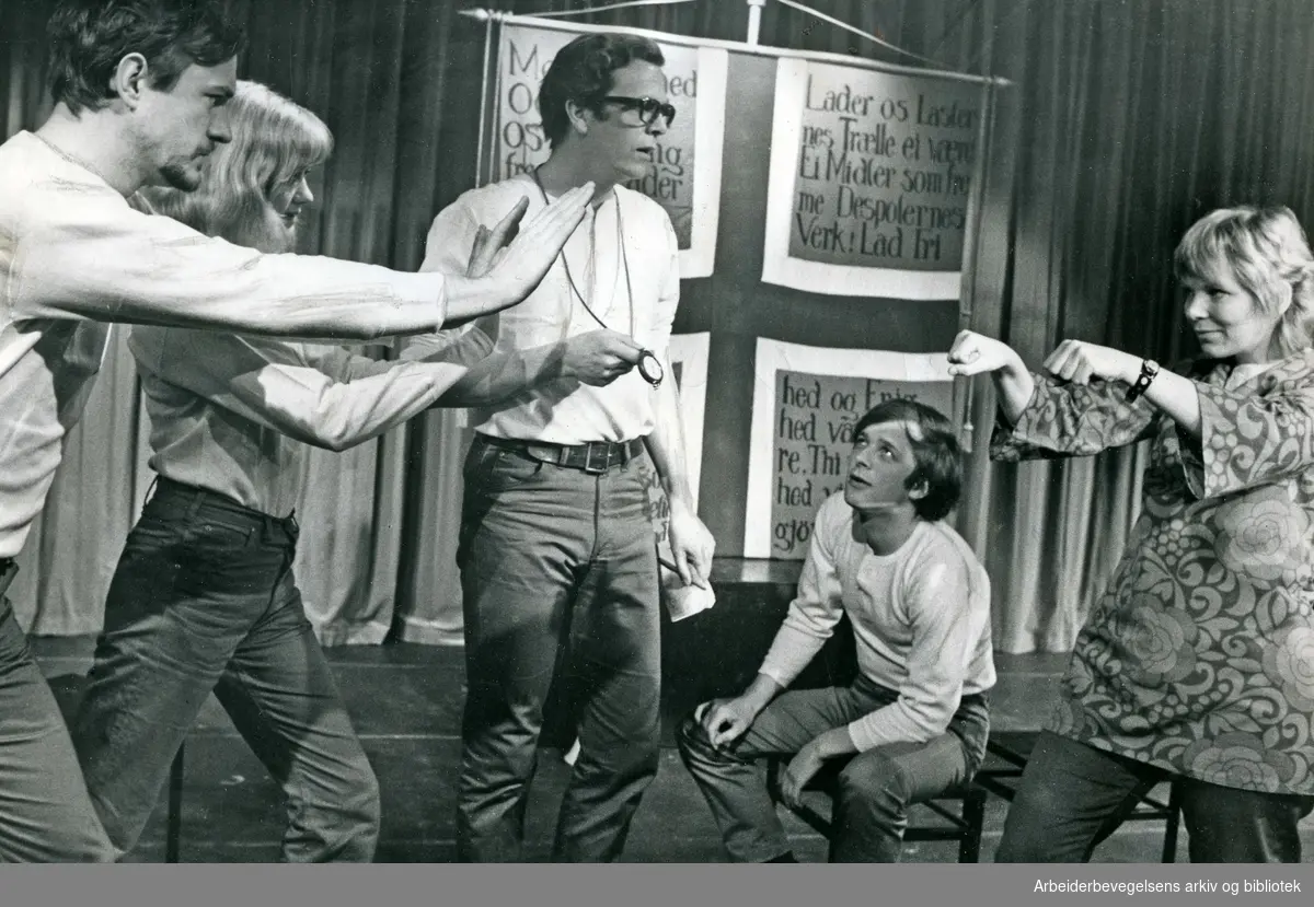 Forestillingen Svartkatten Pa Nationaltheatret Varen 1971 Forestillingen Var En Politisk Kommentar Til Konkursen Ved Vestfos Cellulose